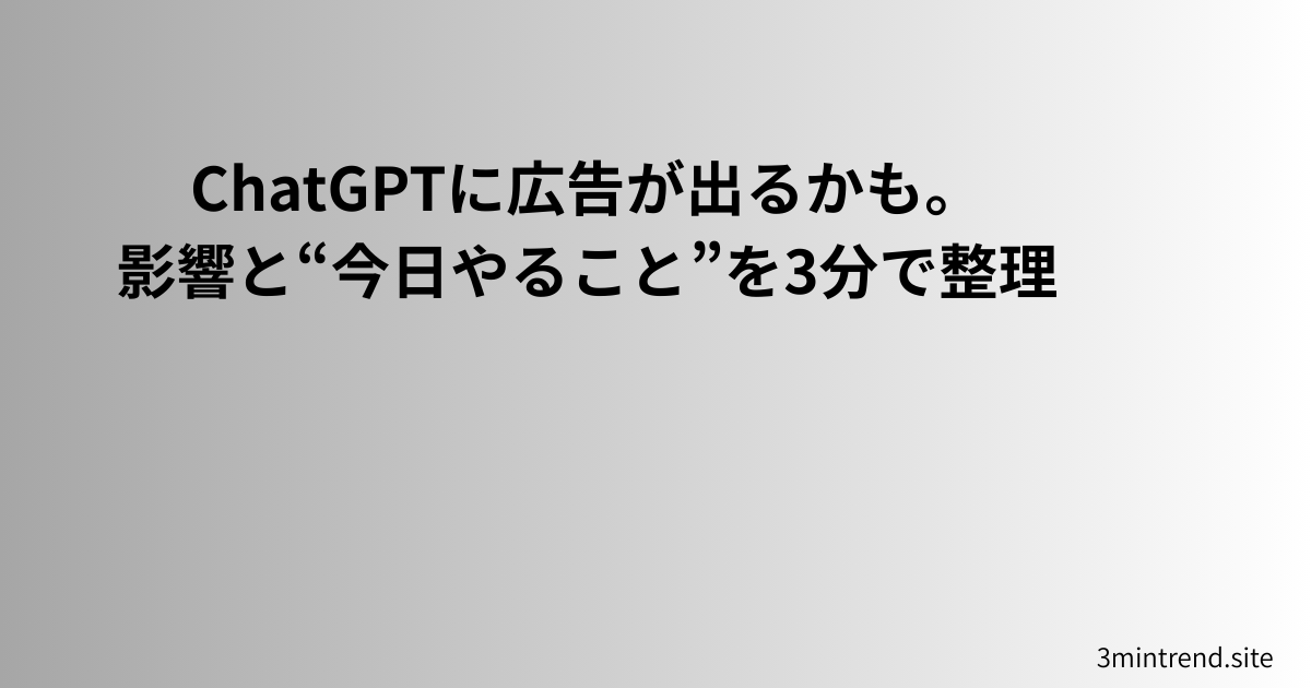 ChatGPTに広告表示が入る?無料ユーザーへの影響と今日やること(3分)