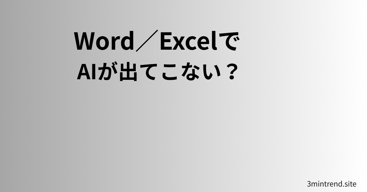 - Word/ExcelでCopilot(AI)が使えないときは、